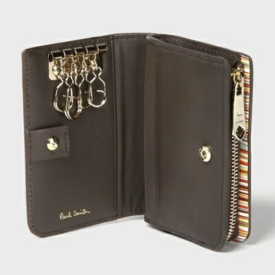 ■サイズ 縦7.2cm 横11.1cm 厚み3.0cm ■素材 牛革ジップ回りからさり気無くのぞくマルチストライプが印象的なキーケース。